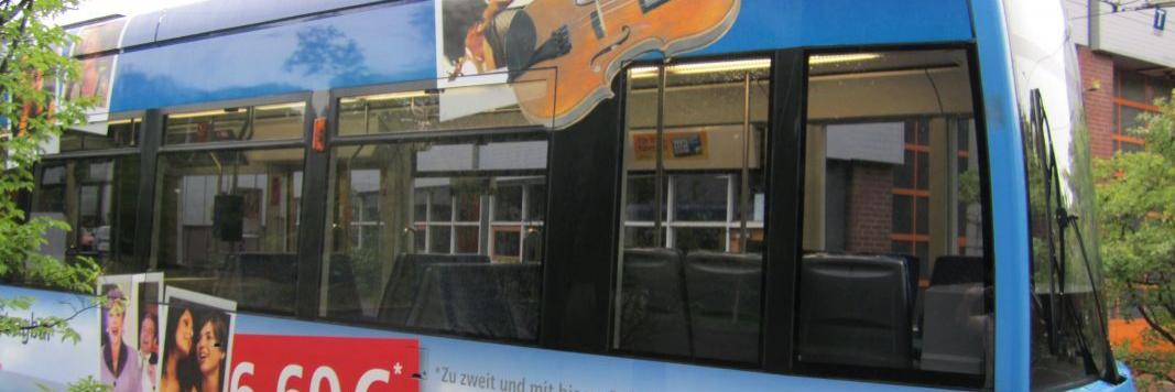 Die Königsdisziplin der Folierung. Wir realisieren komplexe Ganzgestaltungen für Straßenbahnen und Züge unter Einhaltung aller Sicherheits- und Brandschutzvorgaben.